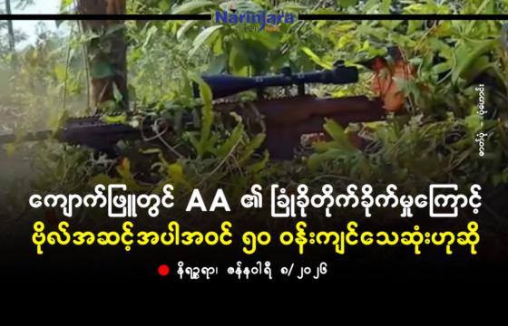 ရခိုင်ပြည်၊ ကျောက်ဖြူမြို့နယ်တွင် ယနေ့ အာရက္ခတပ်တော်(AA)၏ ခြုံခိုတိုက်ခိုက်မှုကြောင့် အင်အား ၁၀၀...