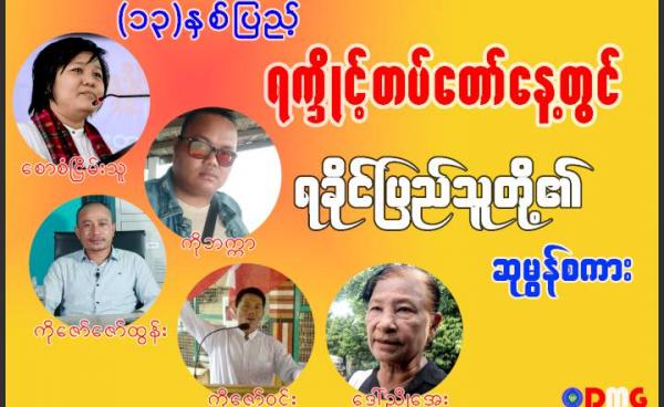 လက်ရှိမြန်မာပြည်တွင်းအခြေအနေများ၊ သေဆုံးမှု၊ ဖမ်းစီးခံရမှု၊ နေအိမ်များမီးရှို့ခံရမှု၊ စစ်ဘေးရှောင်များနှင့် ပတ်သက်ပြီး ပြည်တွင်းပြည်ပ အဖွဲ့အစည်းများ...