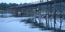 ထိုင်း-မြန်မာနယ်စပ်၊ စံခလပူရီမြို့အတွင်း၊ တည်ဆောက်ထားသည့် နှစ်ပေါင်း ၃၀ ကျော် သက်တမ်း ရှိ သစ်သား တံတားအိုပေါ်တွင် ဖြတ်သွား၊ ဖြတ်လာသူများနှင့်...