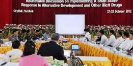 ထိုင်းမြန်မာနယ်စပ် တာချီလိတ်မြို့ အောင်မြတ်ခန်းမ၌ နှစ်ရက်ကြာကျင်းပခဲ့သည့် ‘သျှမ်းပြည်နယ် အစားထိုးဖွံ့ဖြိုးရေးနှင့် တရား မဝင်မူးယစ်ဆေးဝါးတိုက်ဖျက်ရေး...