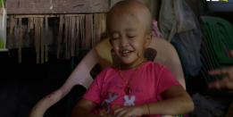 ပန်းရောင်ကုလားထိုင်လေးပေါ်တွင် ထိုင်နေသည့် ကလေး မလေးသည် ခေါင်းကိုငုံ့ရင်း အဆက်မပြတ်ခါယမ်း လျက်ရှိသည်။