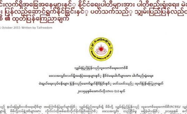 မမြဝန်းရံ — ရွေးကောက်ပွဲ ကာလတွင် တိုင်းရင်းသားလက်နက်ကိုင်များ ဘက်မှတိုက်ပွဲများ မဖြစ်ပွားရန် အတတ်နိုင်ဆုံး ထိန်းသိမ်း သွားမည်ဟု RCSS/SSA၏...